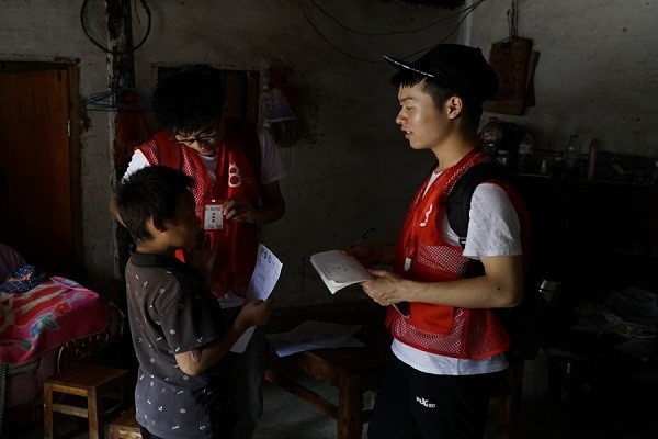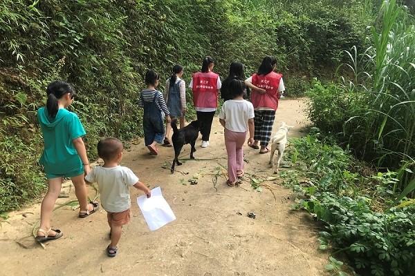 (孩子们与志愿者一起去走访)