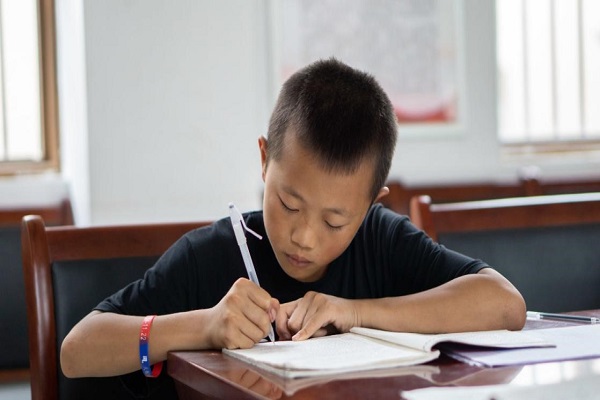 (小男孩正在认真写作业)