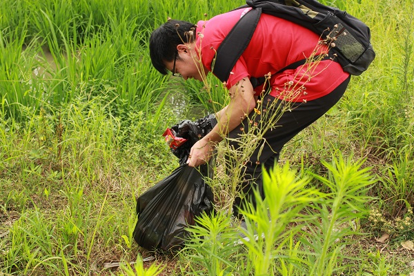 (实践队员正在清理垃圾)