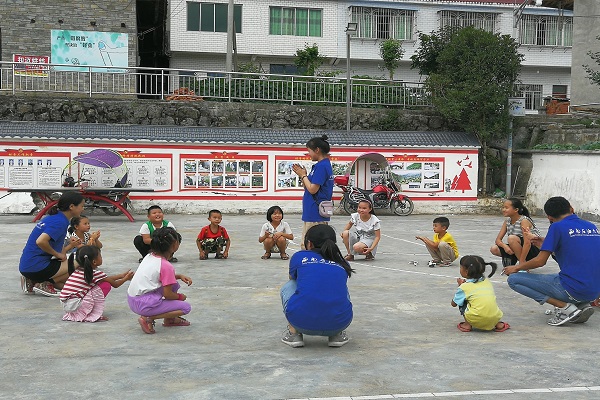 在实践的这些天里,有一小组实践队员一直留守在村委会,他们组织小孩子看书、折纸、唱歌、做游戏,向他们传授简单的法律知识。队员们将法律常识巧妙地融入阅读、游戏等活动中,设置了有奖问答等环节,以糖果、文具、明信片等小礼物作为奖励,增添了普法教育的趣味性,也大大提高了小朋友们参与活动的热情,他们在游戏中学法,从小培育他们的法律意识。同时,对于一些高年级的中小学生,实践队员也非常热心地为他们解答学业上的疑惑,耐心地讲解作业上的难题,并传授给他们许多书本上没有的知识,向他们描述外面更广阔的世界。