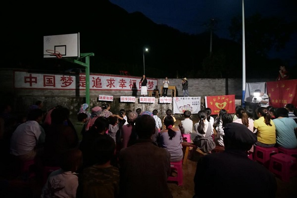 8月9日,西南石油大学柚约云梦实践队在云南省马关县嘎迪村村委和驻村队的协助下顺利完成夏令营期间的第一次巡演,本次巡演的地点在嘎迪村长冲村小组,以“脱贫攻坚”和“环境保护”为主题演出小品和歌曲等节目。巡演还邀请了当地公安局工作人员详细讲解村民需要遵守的法律法规。