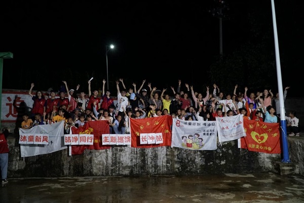 巡演结束之后,队员们把物资送到车上,让小孩子坐车而自己选择走路,一路上歌声飘荡,大家的欢声笑语穿透刚下过雨的山峰和云层,回荡在嘎迪的每一个角落里。第一站巡演的顺利结束让队员们感受到来到嘎迪做志愿活动的快乐,也将村委和驻村队脱贫攻坚和环境保护的工作观念深深注入到每一位村民和儿童的心里。相信在无数扶贫干部、村委和志愿者的团结协作下,祖国的边疆贫困地区会发展得越来越好。(图/邓 伟 文/董望旺)