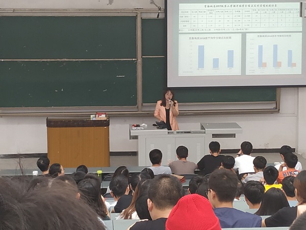 班会开始,文老师作为18级资勘、地质专业新任辅导员进行了的自我介绍,同学们对文老师有了一定的了解。随后,文老师就上学期资勘、地质专业同学的学分绩点以及四六级过级情况进行了分析,并做出总结,指出部分同学在学习方面不够重视。同学们也在老师的分析中找到了自己在上一学期中在学业方面的欠缺。