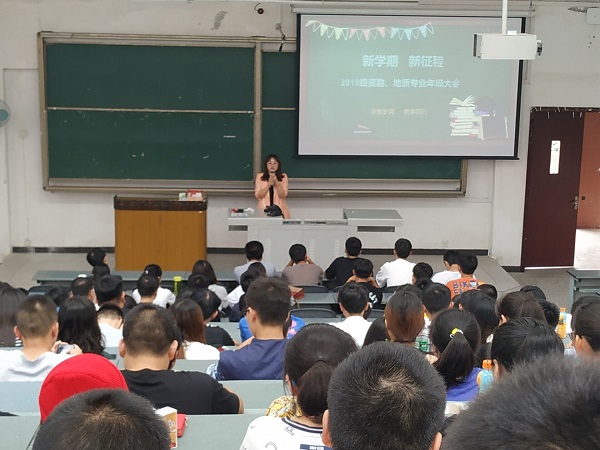 2019年9月5日下午3点,18级资勘、地质专业全体同学于明辨楼C205开展了第三学期年级大会,此次年级大会由文雪老师主持,主题为“新学期,新征程”。