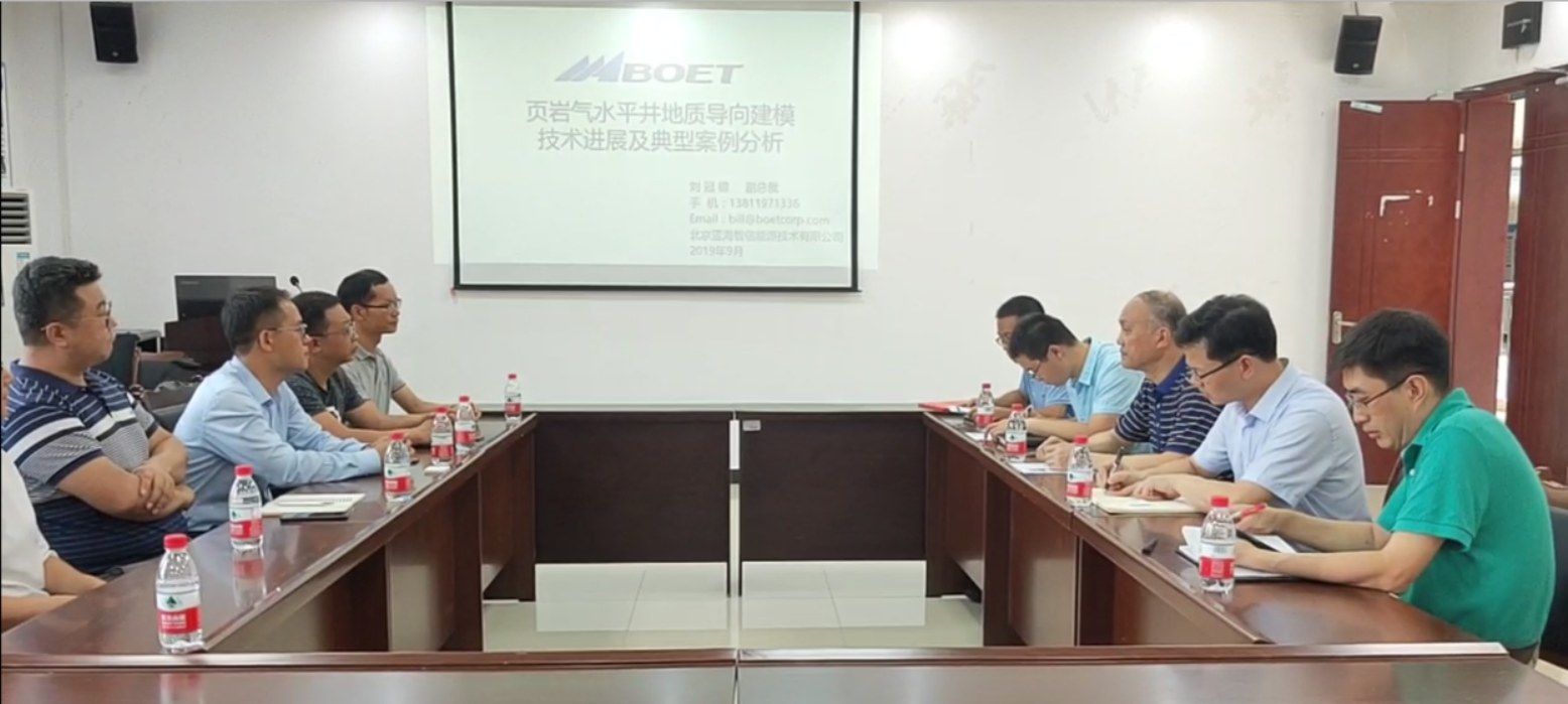 2019年9月9日下午2点30分,北京蓝海智信能源技术有限公司(BOET)副总裁兼首席地质导向师刘冠德等一行6人莅临我校,北京蓝海智信能源技术有限公司代表团向我校老师详细的介绍了地质导向建模技术、LWD高级成像解释、旋转导向作业等技术的发展状况、应用成果及未来展望,特别对地质导向建模技术对精准钻探上取得的傲人成果进行了介绍。BOET代表团此次莅临我校的主要目的是希望与高校合作以期推广和深入研究地质导向建模等技术,并向我校捐赠StarSteer地质导向建模软件。为积极响应国家产、学、研结合的号召,我校热烈欢迎BOET代表团,并与捐赠StarSteer软件的北京蓝海智信能源技术有限公司举行了签约仪式。会议在明辨楼D404举行。