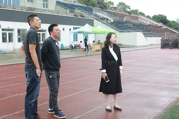 上午的天气比较凉爽,但同学们并没有因此松懈下来,教官给出的高要求,同学们都竭尽全力地去达到。即使这一次没有做好,也没有气馁,而是鼓励自己,相信下一次一定会有所进步,一步步接近教官的要求。恰巧今天党委副书记范起东、辅导员李民老师、曾静红老师来看望正在军训的同学们。看着同学们刻苦训练、全神贯注的样子,老师们脸上也露出了满意的笑容。