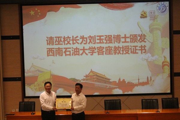 活动伊始,巫晓兵校长为刘玉强教授颁发西南石油大学客座教授证书,并向刘玉强教授表示热烈的欢迎。刘玉强教授以“何为成功?成功的定义很多种”展开话题,向大家讲述 “从大学到社会如何使思想成熟”。刘教授从时代需求、如何学习、思想准备、工作态度、教育建议、关系处理六大方面着手,告诉大家从大学跨入社会这个阶段应该做什么、应该有着怎样的觉悟。他告诫同学们要勇于承担国家、社会责任,怒放青春梦想,作为新时代青年,要做到不浮躁、不纠结、不焦虑、不抱怨。刘玉强教授提到“如何处理好家庭生活”对于事业发展也额外重要,同学们不仅要对社会有贡献,对家庭也应该有贡献。范翔宇副院长做最后发言讲话,他叮嘱大家要不忘初心,牢记使命,不断努力奋斗,为祖国建设添砖加瓦,争做一名优秀的地科学子。