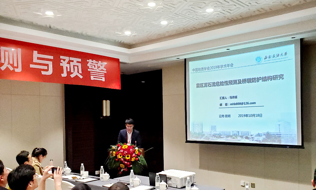 我院岩土与地下工程教研室张伯虎副教授和苏培东教授指导的硕士研究生马浩斌、曹津铭、王茂珲参加了本次会议,并在分会场“地质灾害监测与预警”作了专题报告,并与其他参会专家、学者进行了学术交流。马浩斌作了题为《泥石流危险性预测及桥墩防护结构研究》的专题报告,曹津铭报告题目为《大临铁路红豆山隧道有害气体监测与成因机制》、王茂珲报告题目为《基于梯形断面抗滑桩双拱协同作用的合理桩间距分析》,报告引起了与会专家的热烈讨论和高度评价。通过这次会议,展示了我院学子科研风采和地质灾害方面的研究成果,感受到了地学研究的最新前沿方向,促进了大家在科研道路上不断进步,努力提升自我。(图/文 马浩斌 李雅雯)