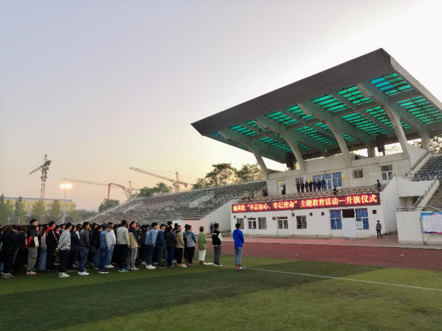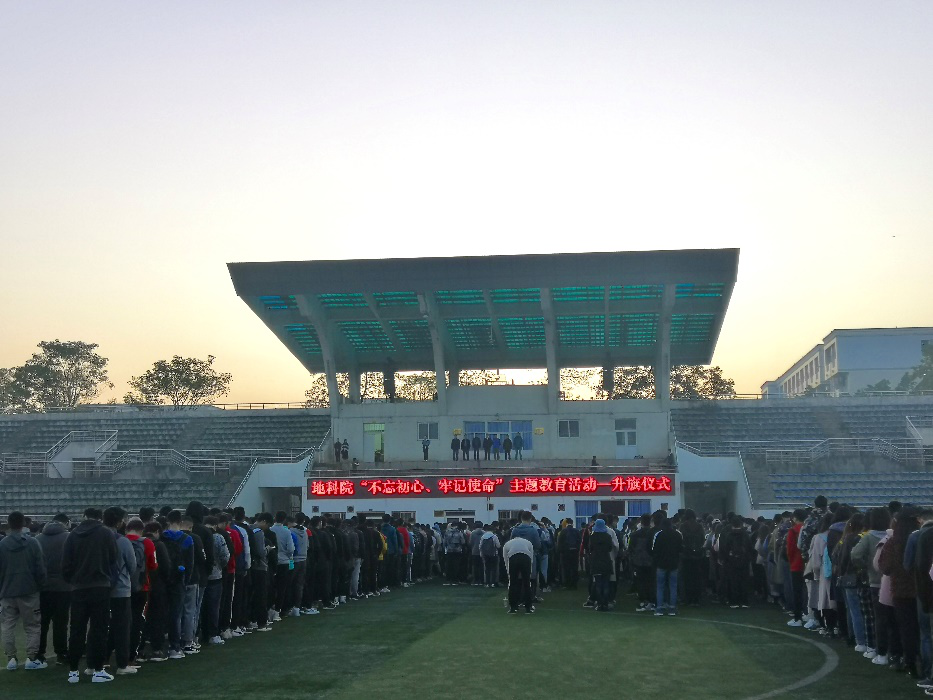 2019年10月28日早上7点,地球科学与技术学院在一期足球场组织学生参加2019年秋季学期升旗仪式。本次升旗仪式由我院全体领导及学生参加,共计2600余人。