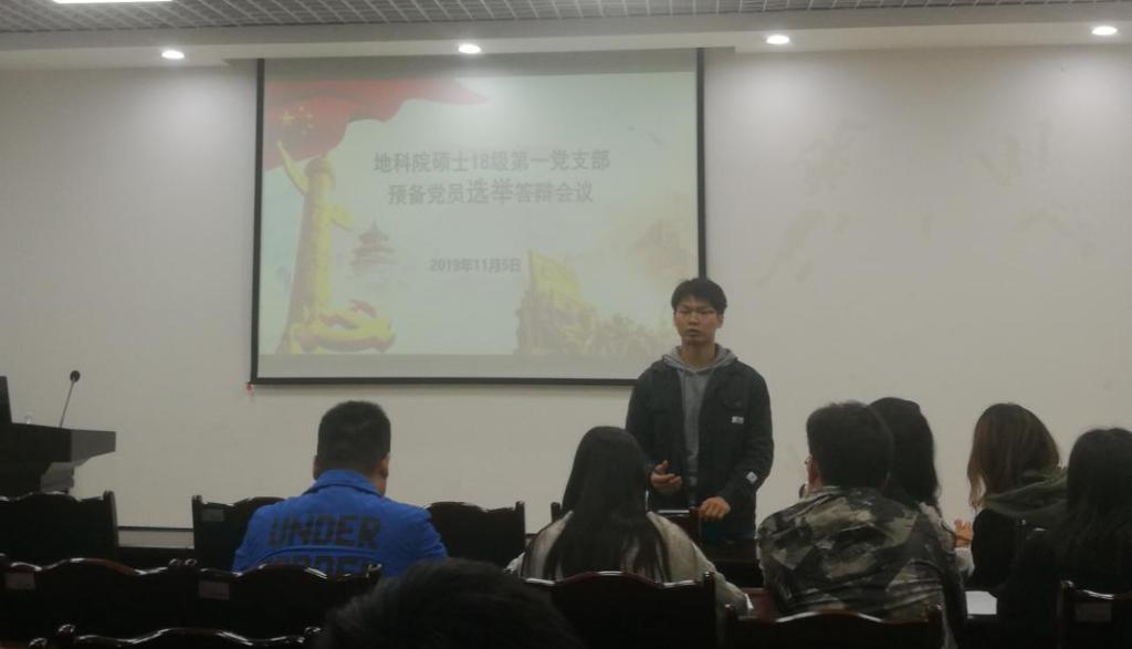 2019年11月5日,地球科学与技术学院硕士2018级第一党支部预备党员答辩大会在明辨楼D404召开。会议在党支部书记蒋华川的主持下有序进行,与会人员有全体党员和预备党员候选人。此次会议以强化答辩对象的党性知识、端正入党动机为宗旨,从基本情况、理论知识、工作学习生活等方面对预备党员候选人进行了综合考察。答辩环节共分为个人自述和提问。