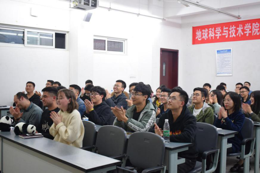“细雨生寒未有霜,庭前木叶分青黄。一点禅灯半轮月,举杯共邀讲台旁。”2019年11月8日周五晚上7:30,由AAPG学生分会与西南石油大学地科院研会共同举办的“Academic and Life”国际生交流分享会在明辨楼C108顺利召开。与我们分享的三位国际生分别是来自阿尔及利亚的Dr. Massine、刚来中国不久的乌兹别克斯坦籍John Smith以及来自俄罗斯的Catherine,此次交流分享会吸引了许多热爱英语、交际以及外国文化的同学,他们满怀期待,纷至沓来。此次活动由张玉苹与朱必清同学主持。