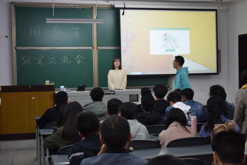 首先上台交流的是来自地科院的沉积学专业研究生Massine. Bouchakour。这是他来中国深造的第三周,2015年他在他的家乡阿尔及利亚的USTHB大学获得硕士学位,四年间过着音乐家的生活(笛子),他说:“My dream was always to continuing my studies in geology as doctoral student”,四年后来到西南石油大学继续完成博士学位的梦想。他还热情地向我们介绍了他祖国的地理位置、国旗、气候等自然地理条件,他还提到了撒哈拉沙漠及当地的风土人情,阿尔及利亚拥有极其重要的油气资源,还有北非最大、保存最好的古罗马遗迹提姆加德。最后,他向我们分享了很多阿尔及利亚的传统美食,比如Couscous、Chorba、Rechta和Zviti等。凭借美食和美景的诱惑,台下的同学们的注意逐渐被吸引。Massine的分享后,在主持人的引导下进入提问环节,在场的同学们对外国文化极其浓厚的兴趣,纷纷举手提问。而Massine也以诙谐幽默的风格回答同学们各种有趣的问题。紧接着,主修经贸专业的语言生John Smith向我们分享了他的学习方法和建议,如列周计划、去图书馆学习等,同学们随后进行了热烈的探讨。最后,来自俄罗斯的主修石油与天然气工程的Catherine分享了她的故事,从小到中国来旅游,她认为成都是一个非常适合生活的城市,并选择了石大开始了自己的异国求学之旅,熟练掌握中英俄三语的她还向大家介绍了她学习中文和英文等外语的经验与技巧。会后,同学们在台下与三位国际生积极交流互动,并拍照留念。