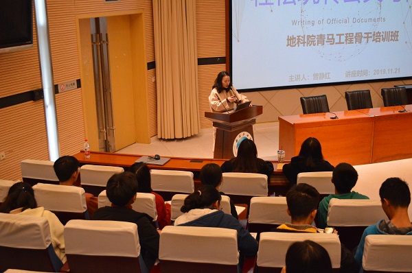 11月21日,地科院青马骨干班第二次培训于思学楼A114顺利进行,本次培训由辅导员曾静红老师为青马骨干班学员开展“玩转公文写作”主题讲座,旨在加强、规范学员们的公文写作能力。