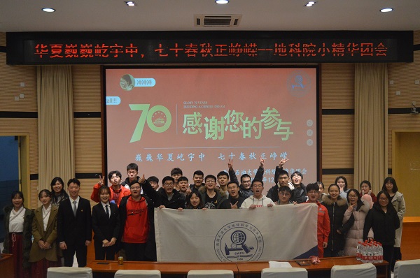 12月12日晚七点,地科院共青团小精华团会在思学楼A114举行。本期活动主题是“华夏巍巍屹宇中,七十春秋正峥嵘”。本次活动到场的嘉宾有西南石油大学校团委罗克维老师、地科院团委书记文雪老师以及来自各学院的主席与评委们。