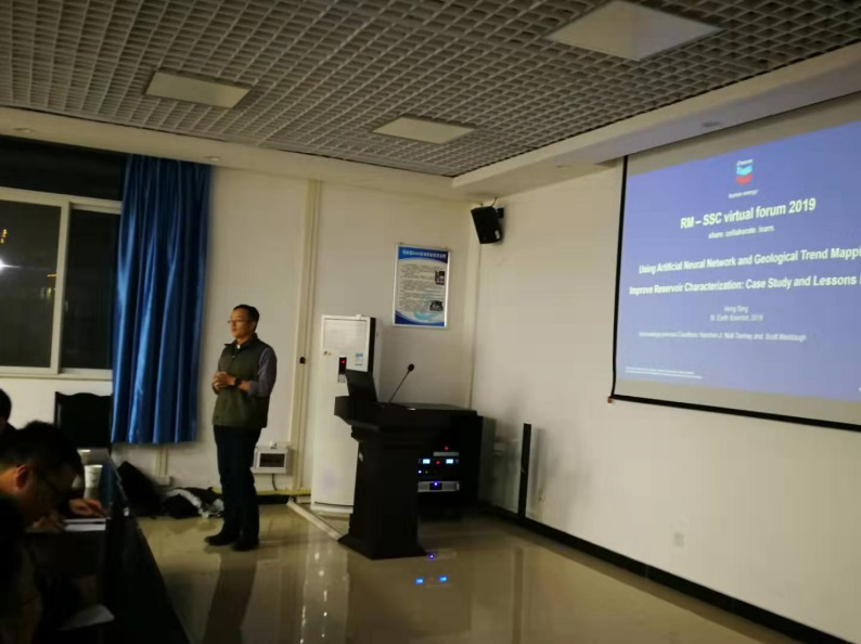 12月26日晚,19:30-21:30,由天然气地质四川省重点实验室、地球科学与技术学院和西南石油大学科研处联合邀请的雪弗龙公司高级油藏和地质开发专家,TangHong博士为大家作了题为:“人工智能在测井相分析和油藏描述中的应用及经验”的专题学术报告会。