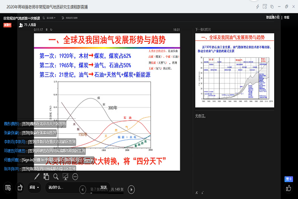 为了积极响应国家和学校的号召,地科院根据相关教育文件,对网上教学的目标、原则、步骤等做出了详细部署,稳步推进春季学期在线教育教学工作。经过2周的充分准备,3月16日我们迎来了本学期第一堂研究生线上专业课程。任课老师和学生通过在线教学平台远程互动,用新的方式传递知识,启发思维。