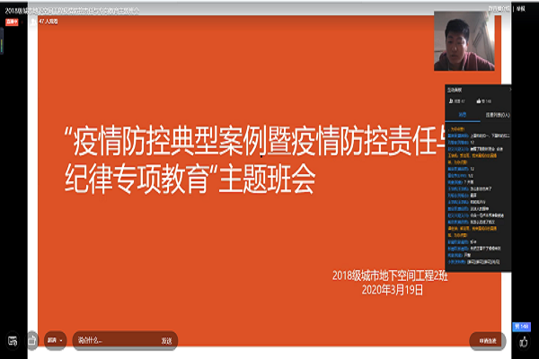 3月19日下午,2018级城市地下空间工程2班线上班会顺利举行。本次班会由郭龙雨主持。