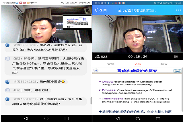 本次讲座直播的在线观众数量最高达530人,讲座中既有科普知识,又有专业知识;既满足了专业相关人士对知识的需要,又迎合了非专业大众的口味;适合于全体人群,可谓老少皆宜。本着继续延续着观众与主讲人间互动环节的传统,同学们在讨论区的提问热情依旧。本次讲座既增加了同学们对地球化学领域的兴趣,又加强了学者们和学生间的交流,并充分利用4G直播平台,堪称践行学术形式创新的典范。
