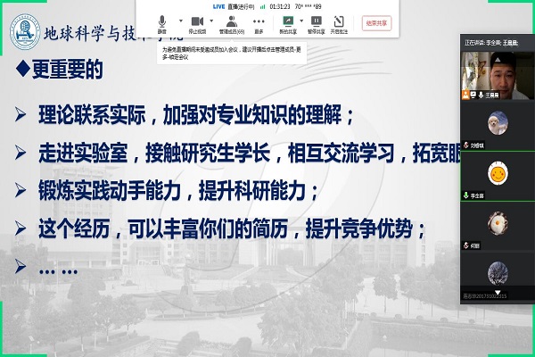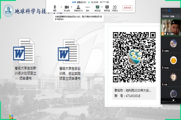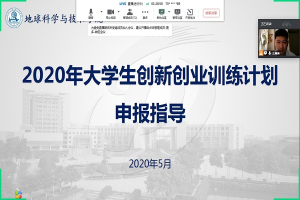 5月5日下午,地科院开展2020年大学生创新创业训练计划申报指导培训会,各老师科研助理、参与开放实验和院级创新基金成员以及学院部分学生参与本次培训会,地科院辅导员王晨晨主持召开本次会议为同学们进行相关培训。