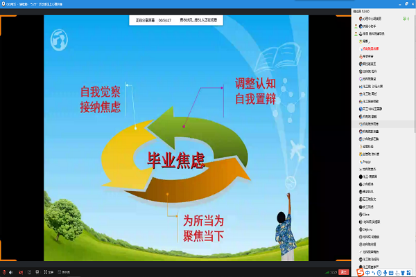 新型冠状病毒感染的肺炎疫情牵动着每个人的心,面对疫情,为了帮助毕业学生构建良好的求职心态,在未知全新的旅程中消除焦虑与恐慌,5月14日下午3点,由心理发展与服务中心主办,地科院承办的心理健康教育讲座成功开展。讲座面向我校全体毕业生,由地科院辅导员李民主持,心理发展与服务中心胡美丽老师主讲。