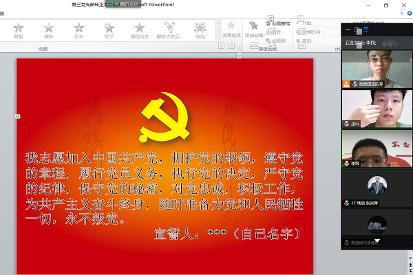 6月24日,通过腾讯会议软件,地科院本科生第三党支部顺利完成关于张焱菁等13位同志转正会议,支部全体成员参会,会议由党支部副书记姜玖林同志主持。