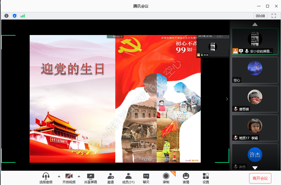 2020年7月1日,中国共产党迎来了第99个生日,支部成员纷纷在会议上献上对党的诚挚的祝福。九万里风鹏正举,新征程砥砺初心。99年里,我们从百废待兴,到成为世界上最大的发展中国家,国民经济快速发展,人民生活日益富足,科学技术不断进步,国际影响力显著增强。