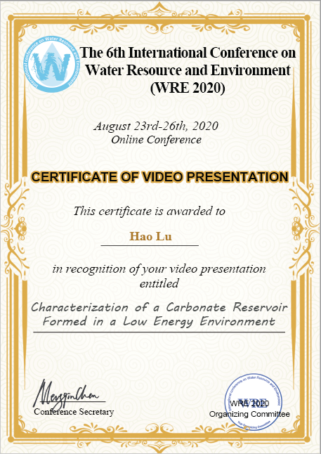 本次会议先后邀请了来自中国、美国、加拿大、英国、德国、日本、韩国、印度等世界各国的专家学者与会交流,我院博士研究生卢浩参加了此次会议并做了口头报告;他与各地高校与科研院所的学者就研究领域的热点问题进行了深入讨论,充分展示出了我校研究生的风采;他熟练的汇报以及深入细致的研究内容获得了与会者的一致好评,增进了其他科研院所对学校的了解,提高了学校在碳酸盐岩微观表征领域的知名度与影响力,也为我校今后与其他科研院所的合作交流打下了基础。会议结束后,组委会授予了卢浩优秀演讲的表彰证书。