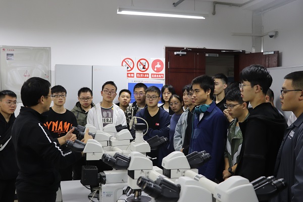 在谢林老师的带领下,同学们先后参观了有机碳实验室,录井技术实验室,荧光显微镜实验室等实验室。每个实验室都有各自不同的科研用途,谢林老师都会耐心地向同学们讲解实验仪器的操作原理与实验流程,让同学们对今后将要所接触的实验仪器设备有了一个初步的了解。