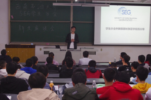10月13日晚,西南石油大学SEG学生分会面向2020级勘查技术与工程专业全体同学举行了新生座谈会。本次座谈会由西南石油大学SEG学生分会主持,SEG中国区执行理事黄旭日院长、SEG学生分会指导老师尹成教授以及SEG学生分会成员出席了此次座谈会。
