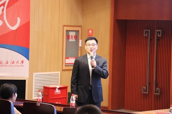 地科院党委书记朱江为新生做了主题发言,他向同学们重点阐述了石油能源的优势,指出在当代石油仍然是国家能源安全战略中的重要部分,告诉同学们石油将在很长一段时间内具有不可替代性,相关地球科学事业也仍属于朝阳行业。朱书记指出我们所研究的地球科学博大精深,同时鼓励同学们一定要树立专业自信,在地科院脚踏实地去学习进步,争取在未来为祖国和民族做出一番事业,最后他对新同学的到来表示最诚挚热烈的欢迎。