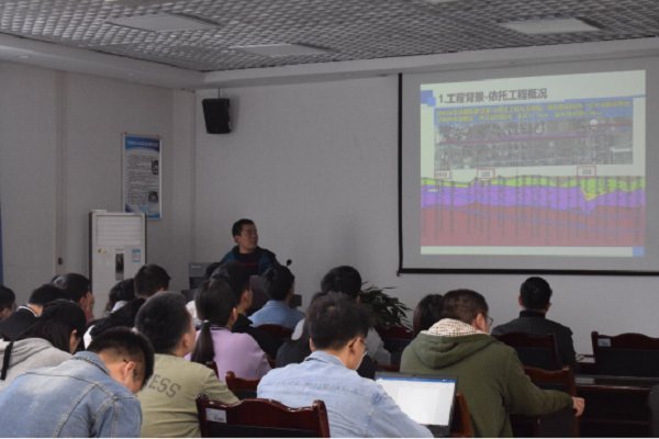 10月29日上午,地科院硕士生导师张军伟副教授在明辨楼D404进行了题为《砂卵石—泥岩复合地层地铁大直径盾构施工关键技术》的专题报告。张伯虎教授和李雪老师出席了本次报告会,地科院博士生、硕士生积极参加此次讲座,整个会议室座无虚席,气氛热烈。