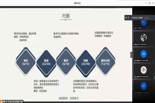 通过此次选调生线上经验分享会的开展,同学们对选调生有了更加深入的了解与认识,从而能够合理的调整自己的复习方向,做到更加充分的准备,在以后参加选调生的过程中能从容不迫,成功上岸。(图/文 王晨熹)