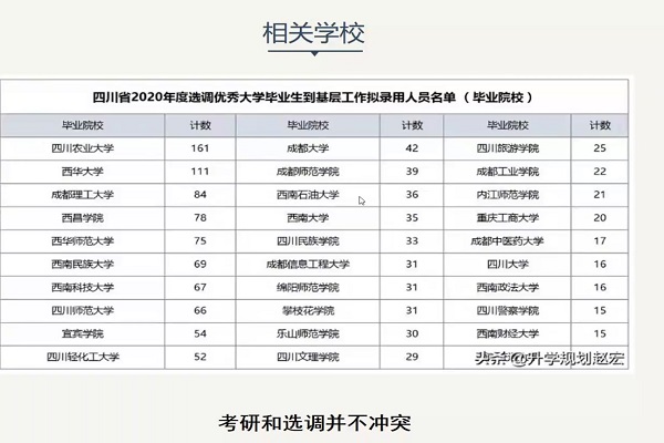 首先,何俊林向大家详细地讲述了选调生的性质、报考条件和相关考试的分数构成,让同学们对选调生有了更加深入细致的了解。随后,他列出了四川省2020年度选调优秀大学毕业生到基层工作拟用人员名单(毕业院校),并指出我校学生对于选调生的了解还有待提高。最后,何俊林同学给同学们分享了其备考期间总结出的个人经验,并提醒同学们在复习过程中应做到全面细致,并适当的根据考试政策侧重复习。