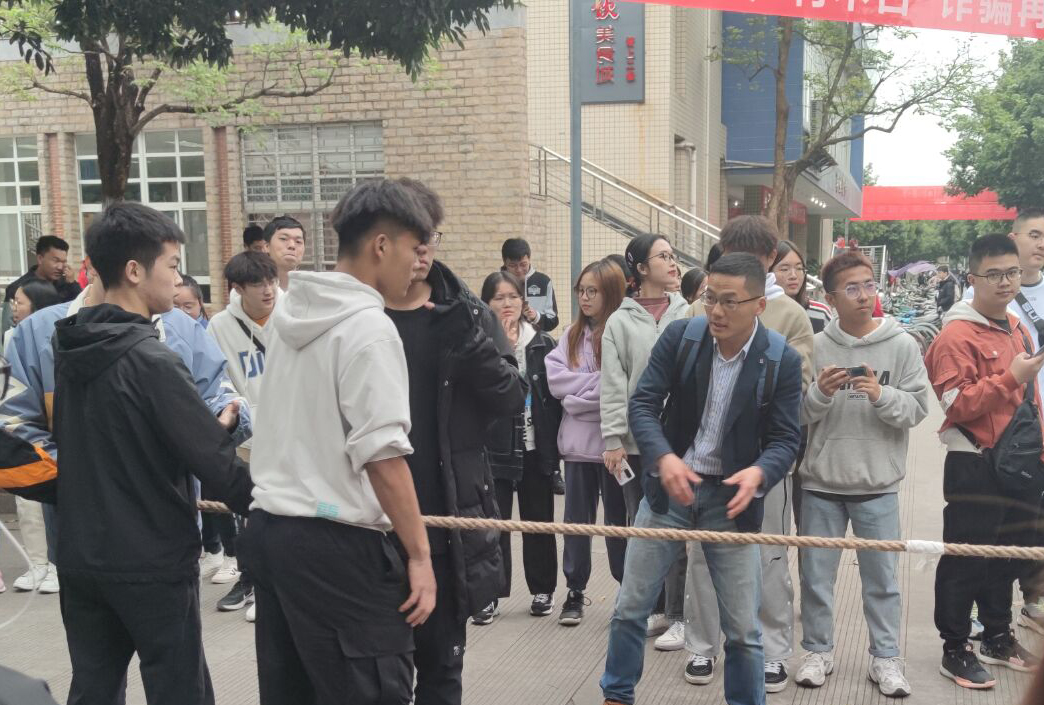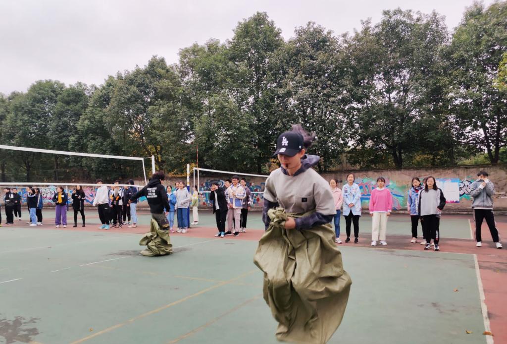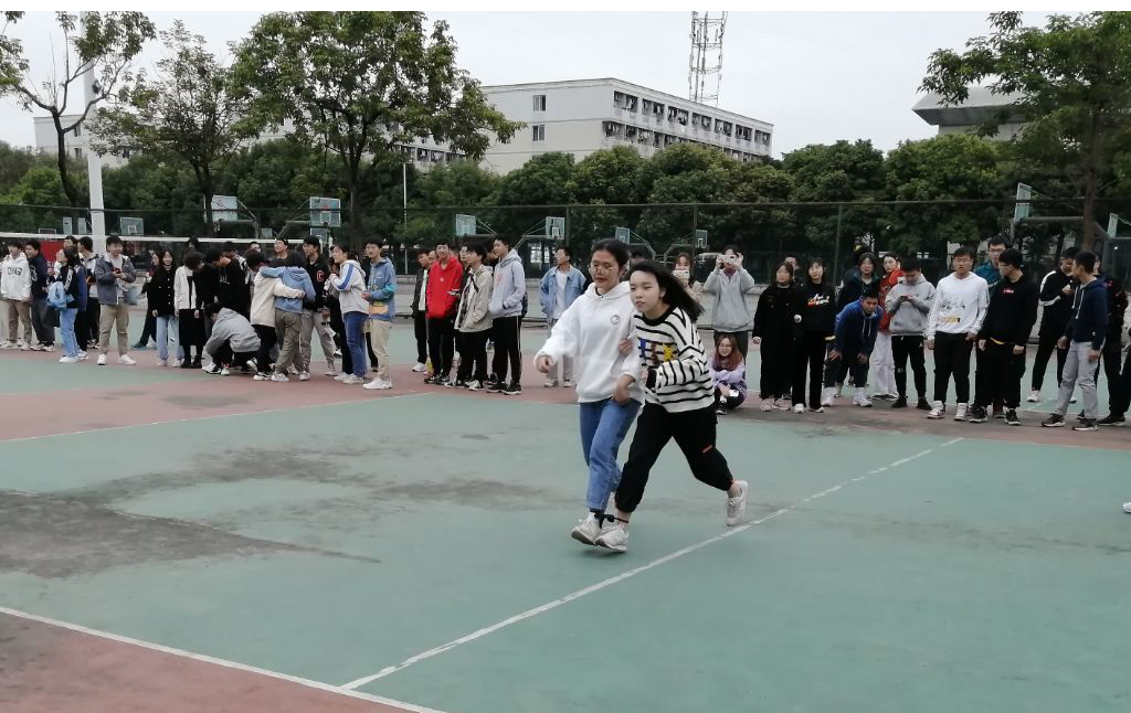 本次素质拓展联谊活动主要包括拔河比赛、篮球比赛、袋鼠跳活动、两人三足活动四个项目,活动以团队竞赛积分的形式展开。其中拔河比赛、篮球比赛以新生辅导员李早博老师、周雅倩老师所带专业为准分为两组进行比赛;袋鼠跳活动、两人三足活动以专业为单位分为五组进行。整个活动中,要求各班级的同学相互协作、群策群力,根据活动规则进行人员分工和配合,最终为自己的专业和班级赢得荣誉。