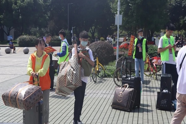 志愿者为新生提行李