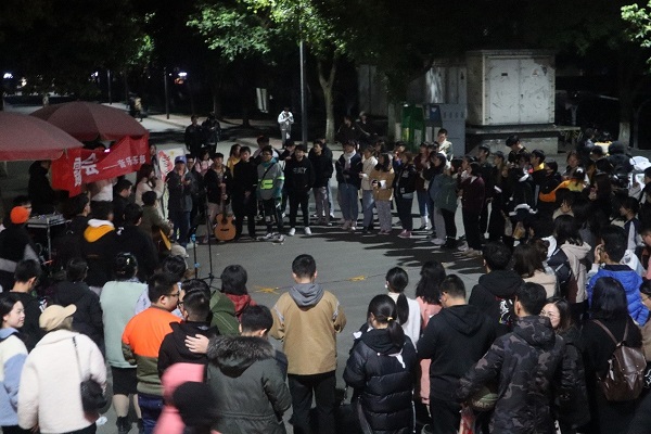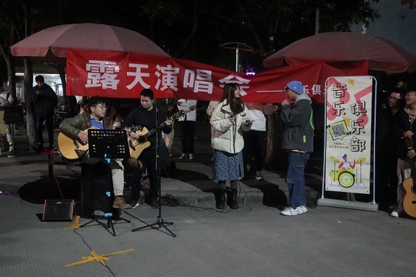 为了丰富同学们的课余生活,11月27日晚19:00音乐俱乐部在第一食堂前举行了 “露天演唱会”。各个学院的同学们积极报名参加本次活动。