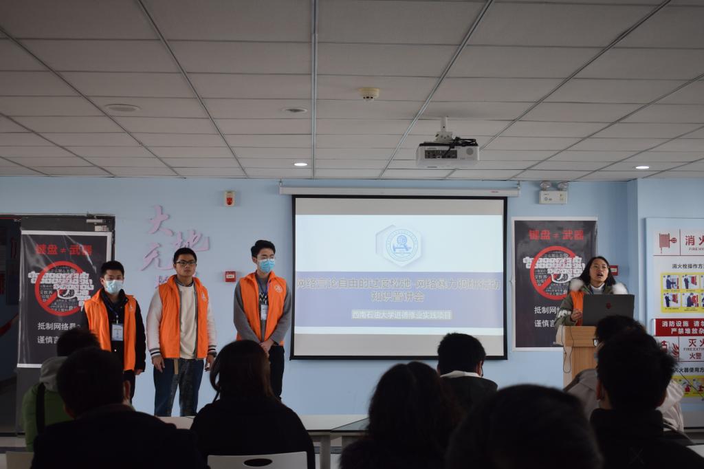 随着时代的发展,互联网等新兴媒体融入人们的日常生活中,信息传播速度加快,公众意见表达空前活跃。12月初,为调研网络言论自由和网络暴力内容,积极引导同学文明上网、提高网络素质,西南石油大学进德修业实践项目宣讲团在明辨楼三楼“地质精神”组织举行了“网络言论自由的过度松弛-网络暴力行动”知识普讲会。地科院本科生、硕士研究生和博士研究生积极参加本次讲座。
