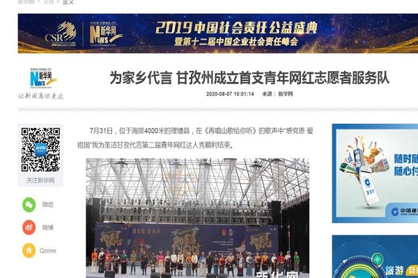 在团队协助活动赛事开展期间累计推广本土特色产品达200余次,实现经济价值220万元,帮扶贫困群众650余人。截止目前,在团甘孜州委以及团队的共同努力之下“我为圣洁甘孜代言”抖音话题播放量达4070.6万次,快手视频播放量达120万次,微博话题达84.6万次,微信公众号推送阅读量达15万。活动更是受到了全国各界的关注,被CCTV-12新闻频道“朝闻天下”栏目进行了长达3分钟的专题报道。李佳芮同学编写的新闻稿被新华网、央广网、中国网、封面新闻、川报观察等20余家主流媒体转载报道。