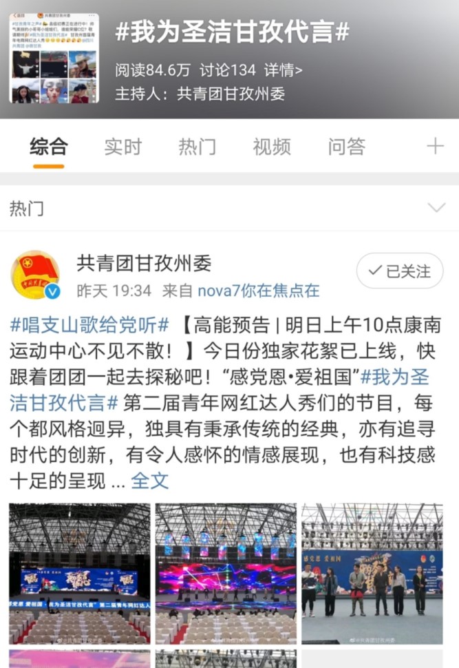 在实践期间深入参与了共青团甘孜州委举办的主题为“感党恩·爱祖国” 甘孜州第二届青年网红达人秀活动。在团队多次线上会议商讨中,决定以当下最流行的自媒体的方式协助团甘孜州委对达人秀活动进行宣传,扩大达人秀活动的受众范围,希望能让更多的人了解到达人秀活动,让甘孜州以外的人们通过达人秀看到特色农牧产品,拓宽滞销产品的销路,同时也能推动甘孜旅游业的发展,带来更多的经济收益。