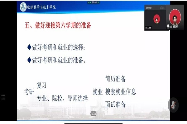最后,王晨晨老师对下学期进行展望,告诉大家要准备迎接第六学期的到来,做好考研与就业的选择,考研的同学要做好复习计划与专业、院校、导师的选择,就业的同学要准备好简历,并做好面试准备。本次大会的顺利召开,帮助同学们熟悉考试与离校返乡流程,响应了我校安排的“错峰”离校返乡的号召,有利于同学们度过一个安全、健康的假期!