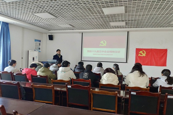 党支部将学习贯彻党的十九届五中全会精神作为当前和今后一个学期的重要政治任务,全体党员干部要切实增强“四个意识”、坚定“四个自信”、做到“两个维护”、做好榜样力量,为同学们服务。郭雅宁同志分享到:围绕实现2035年的远景目标,作为新时代青年学生党员,要培养创新意识,积极参加创新创业竞赛,在比赛中提高学术创新能力,努力将自身所学应用到祖国的建设发展之中,争做新时代有为青年。