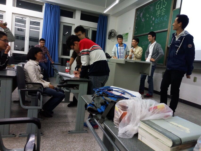 我们有幸邀请到了地球与科学技术学院的指导老师莅临本次活动。活动中,由会长主持,对指导老师的到来表示感谢,对本学期新入会的新会员表示热烈欢迎。会长为各位到场新会员进行自我介绍并分别介绍了各个理事极其不同理事能力及工作范围,为学会内部工作逻辑进行了简单介绍。会长向在场会员清晰说明本学会及GIS学会的主题内容,并联系地理信息技术本专业与GIS的密切关系进行了详细深入的介绍。地理信息技术这门专业对GIS的功能比较依靠,因此这项技术确实是一项本专业的重要手段。会长对本学年学会工作状况进行了年度总结,对各项存在问题的工作进行了明确指出,并提出解决策略。同时对优秀活动的举办进行了总体表扬。