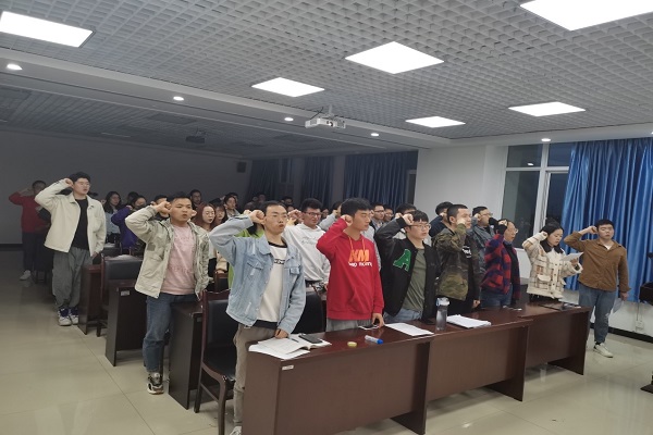 会议开始,全体起立奏唱国歌,行注目礼。随后,黄开桦同志宣读本次会议流程并宣布会议有效。接着是6名同志的个人汇报,每个人都分别从学习、生活和思想方面介绍自己的基本情况。紧接着,入党介绍人对每一位转预备党员的同志进行介绍,指出其的优缺点和需要改进的地方,并表明是否同意推荐其入党。在全体正式党员的举手表决下,本次发展的6名同志均顺利发展为中共预备党员,并在肖逸菲同志的带领下面对着党旗庄严宣誓。会议最后,党支部副书记姜玖林同志进行总结讲话,他对刚加入支部的同志表示热烈欢迎,也谈到会议过程中的纪律问题,希望每个人都能勤于反思,坚定理想和信念,明确自己的方向并不断提升自己。