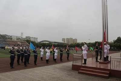 “升中华人民共和国国旗,奏唱中华人民共和国国歌!”微风阵阵,彩旗飘飘,田径场上,升旗台旁,又响起了整齐的踏步声,铿锵有力的步伐,坚定如焗的眼神,五星红旗紧攥,国护队员身姿挺拔。悠扬歌声随风起,凛凛红旗向天升。