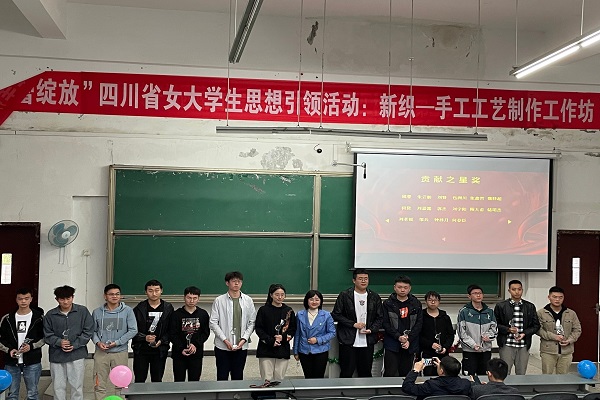 文雪老师为获得“贡献之星”的同学颁奖