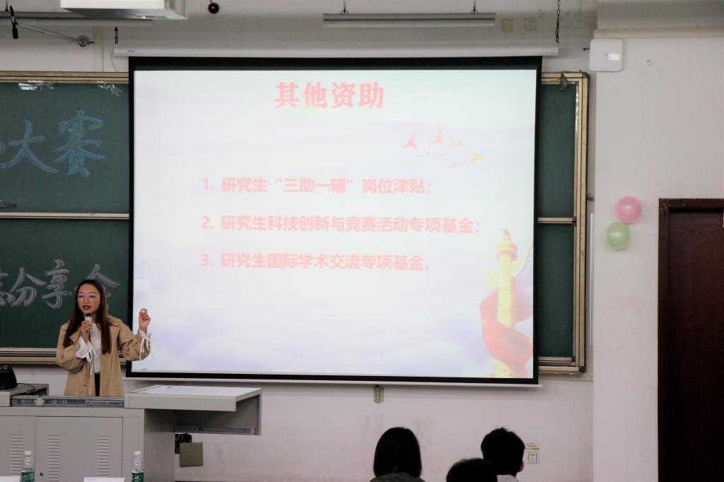 在本次宣讲会中,通过肖静雯对研究生资助政策的介绍,在座的研究生们体会到了党和国家对当代青年学子的关心与福利,也明白了作为政策之下的有志青年学生所需要承担的责任和义务。(图/文 杨 俊 王海燕 胡欣欣)