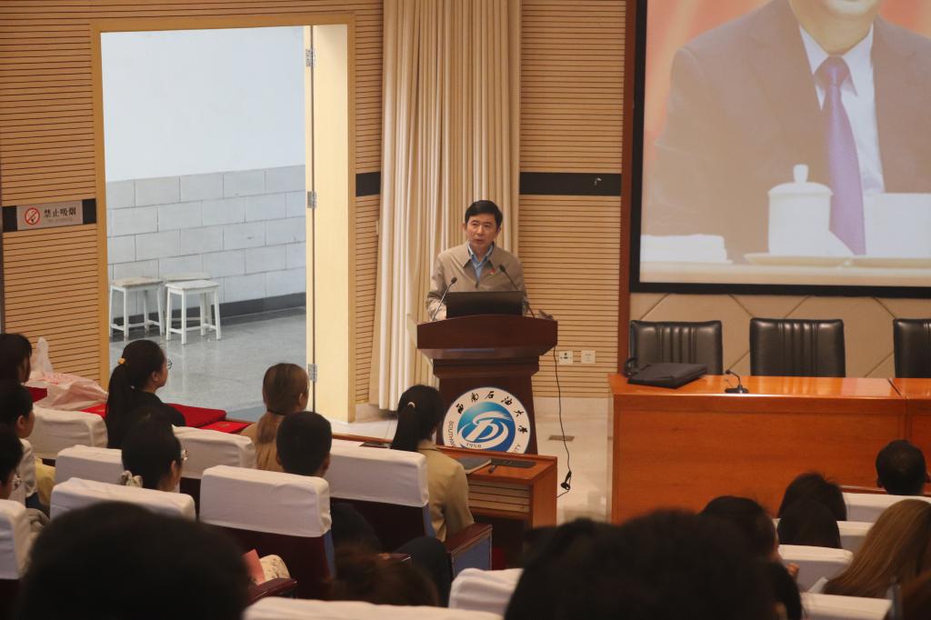 4月16日14:30,西南石油大学党史宣讲团首场报告会在思学楼A114成功召开,会议由马克思主义学院党总支副书记林莉主持,西南石油大学党委书记赵正文,西南石油大学党委常委、宣传部部长易联树出席本次会议,地科院230名教师党员、学生党员代表参会。