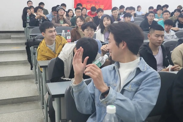 顾高源同学一首《燃点》拉开这场音乐盛宴的序幕。“火柴划过瞬间,落下爱的燃点”,但对音乐的爱永不落下。“怎么也飞不出,花花的世界,原来我是一只,酒醉的蝴蝶”,随着音乐的响起,新一轮的音乐游戏,也随之开始。击鼓传花,音乐停止,音乐之子就被确定,被抽上来的朋友虽然有些紧张却毫不胆怯,依然大声的展现了自己的歌喉。在万众期待中,我们的文雪老师终于登台,为我们讲授音乐小技巧。介绍完小技巧后,便迎来了本次活动的高潮——想唱就唱,唱得响亮