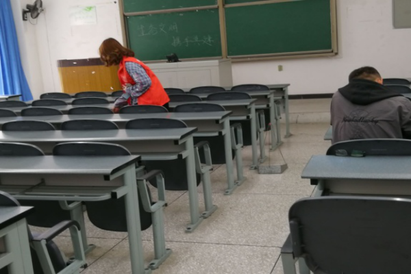 本次打扫的重点主要是明辨楼一楼至顶楼的楼梯、教室卫生。首先,在工作人员的领导下,同学们先在明辨楼C区集合,然后分配工具,准备工作做好以后,同学们有序地进入教学楼进行打扫,同学们用扫帚清扫楼梯的灰尘以及教室里的垃圾,以及用拖把清洁地面,在同学们的共同清扫下,整个教学楼变得焕然一新。