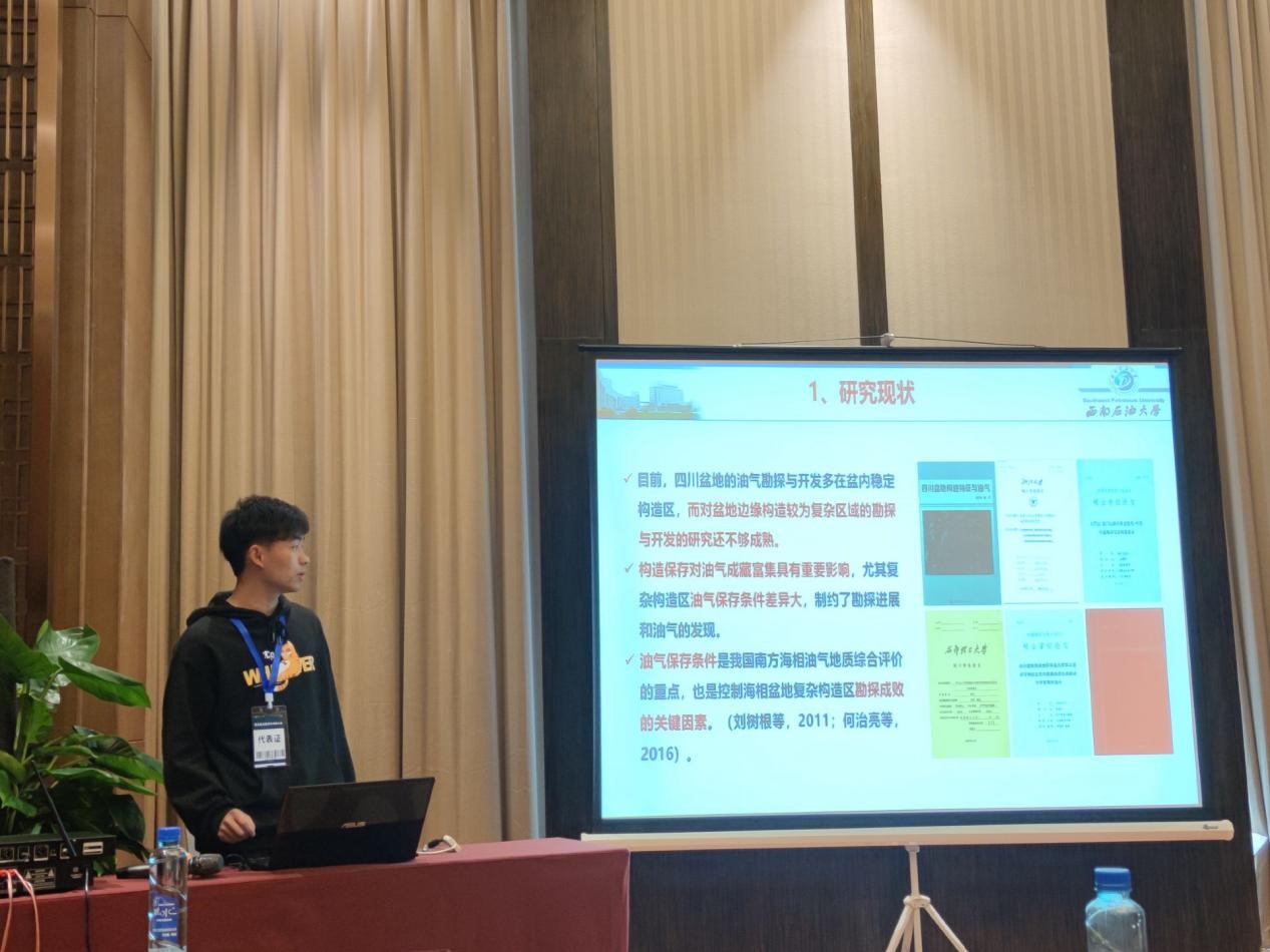 本次会议面向世界科技前沿,面向我国重大战略需求,面向社会发展主战场,设有“能源资源研究与勘探进展”、“矿产资源成矿理论研究”、“地质遗迹、地学科普与教育与旅游地学”等主题。我院参会的8名研究生分别盆缘复杂构造区油气保存条件、页岩力学脆性及可压性评价、盆山构造样式解析、构造与页岩气保存等主题进行了汇报,并与与会的有关专家开展了充分的交流和热烈讨论。